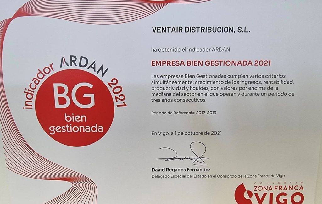 For the second consecutive year, Ventair Distribución has won the “Well-Managed Company 2021” award from the Vigo Free Trade Zone